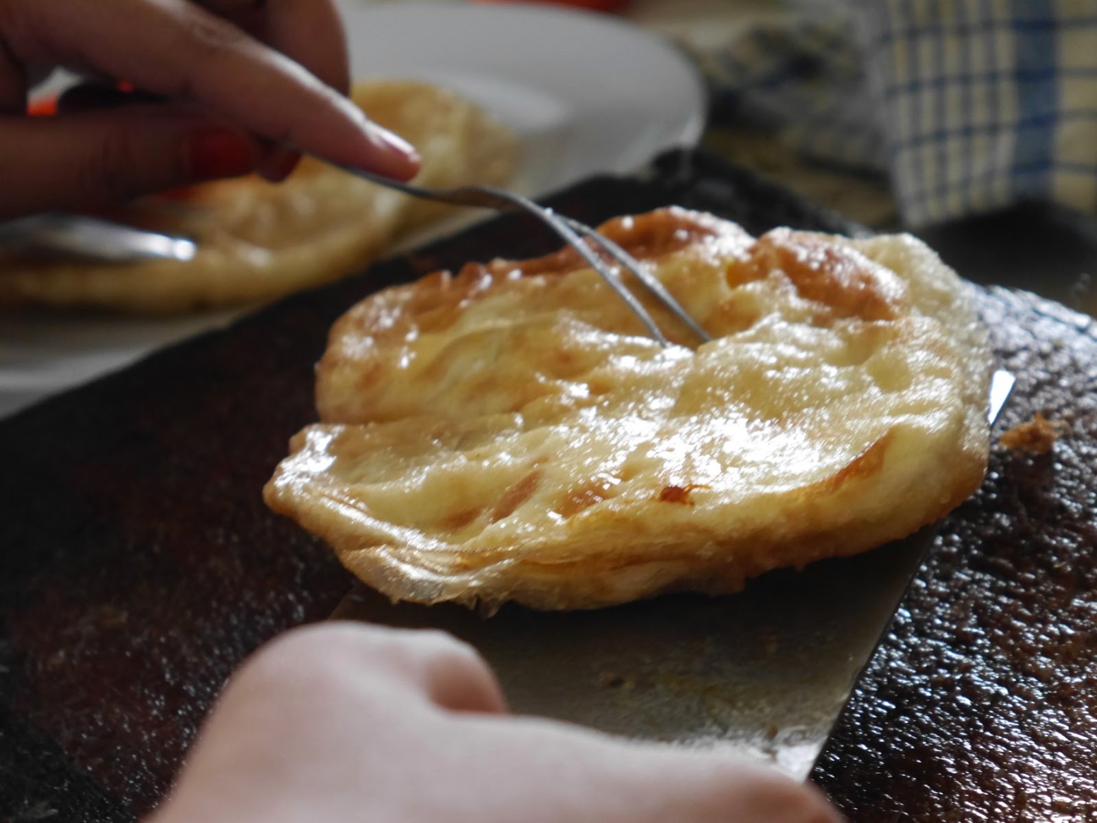 | Di dapur kecil, martabak HAR sedang disiapkan bagi para pembeli. |