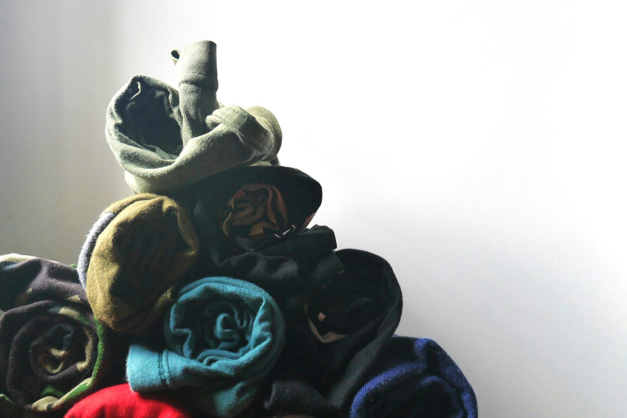Hal sepele yang mengganggu. Tapi saya punya solusi. Sedikit tips untuk berkemas. Benda yang saya siapkan hanyalah karet gelang yang akan mengikat lipatan gulungan semua pakaian saya. Ini cara saya.