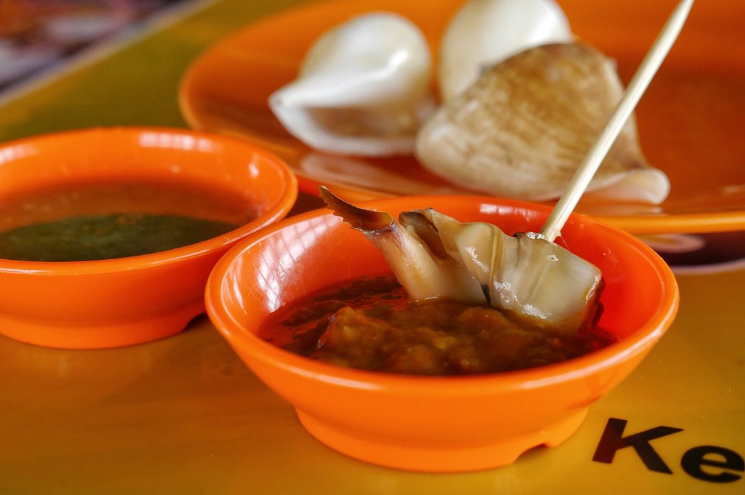 Untuk pelengkap, saya juga memesan sotong goreng tepung dan kangkung terasi. Tidak lupa, seporsi gonggong yang menjadi aksen khas kuliner di Pulau Batam.