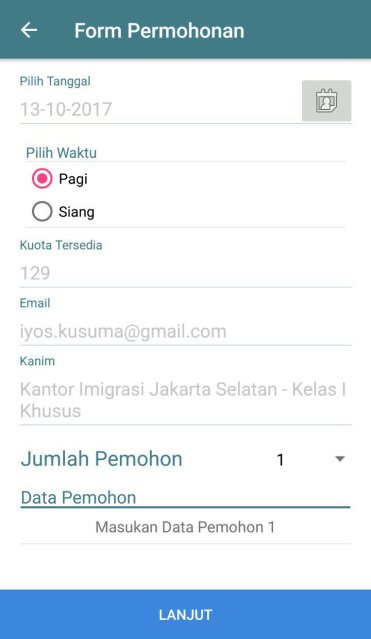 Untuk diketahui, setiap kantor imigrasi memiliki kuota pelayanan yang berbeda. Jika kuota pada hari yang kita pilih sudah penuh (tanggal tidak bisa dipilih), kita bisa coba pilih kantor lainnya.