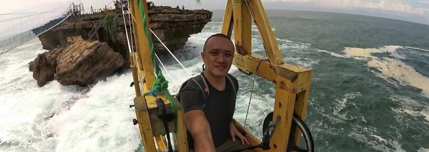 Menaiki gondola kecil yang berderit-derit menyeberangi laut di Pantai Timang. Seperti apa sensasinya?
